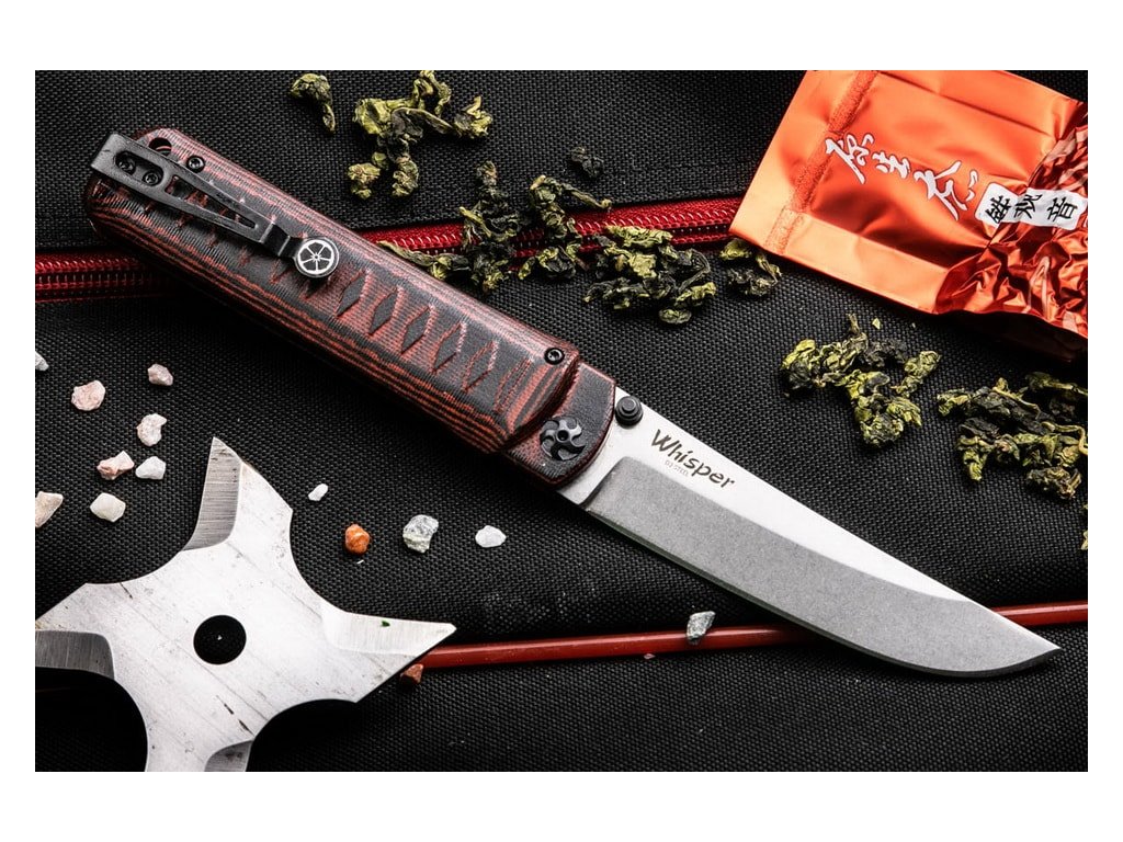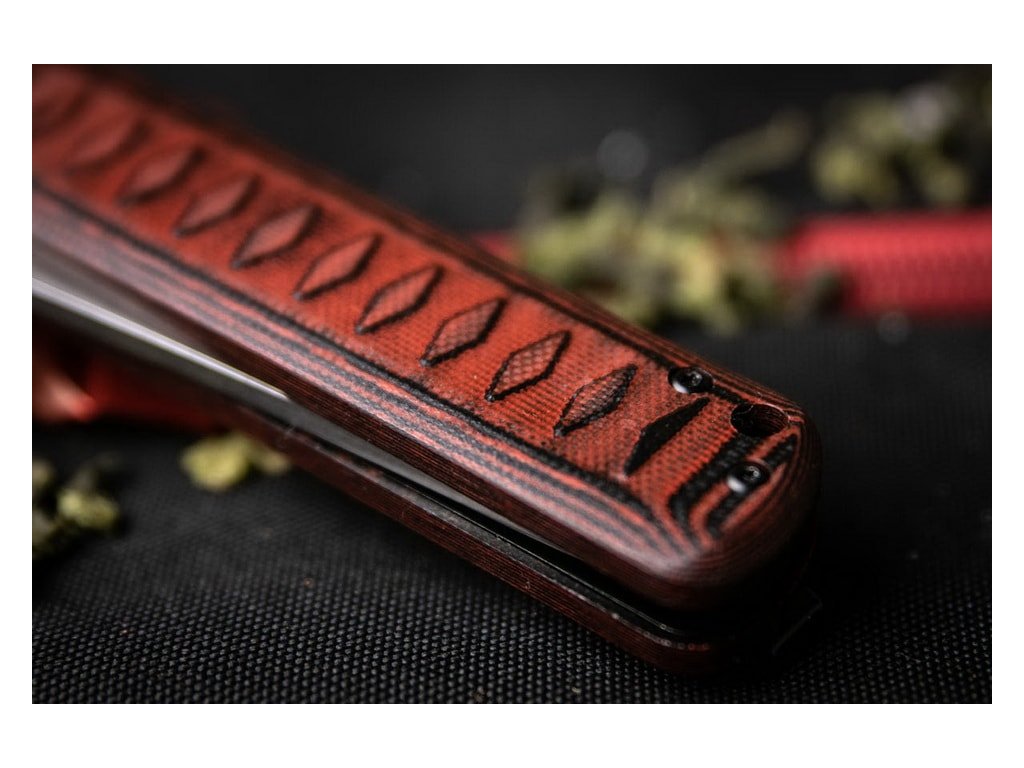 Zatvárací nôž od Kizlyar Supreme, s tvarom inšpirovaným japonskými nožmi. Výborná voľba na každodenné nosenie. Čepeľ z ocele D2, tvrdosti 60-62 HRC má povrchovú úpravu stonewash. Rukoväť vyrobená z G10 v čeveno-čiernej farbe, so zaujímavým "diamantovým" vzorom. Poistka typu liner lock. Klip na zavesenie na opasok.