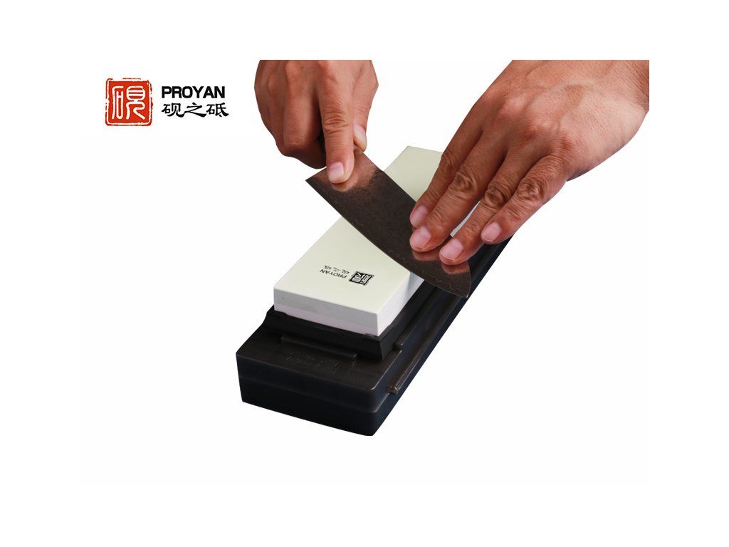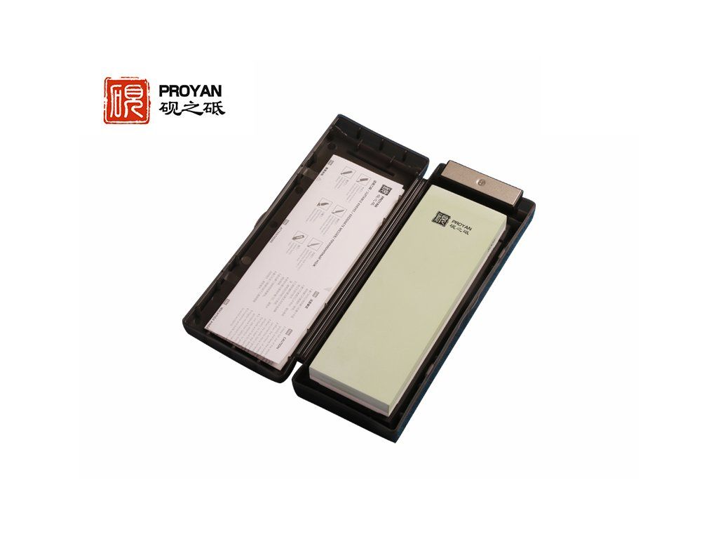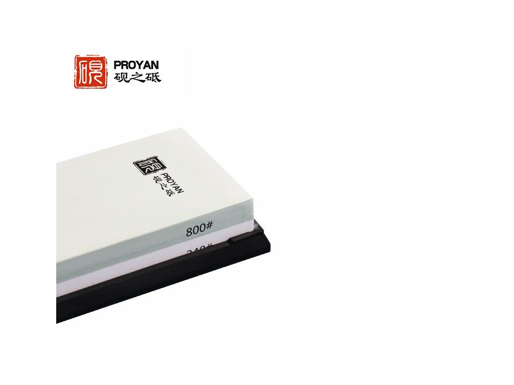 Kombinovaný brúsny kameň, ktorý obsahuje kamene zrnitosti 240 a 800, vyrovnávací kameň a gumený podstavec na kameň s protišmykovými nožičkami. Pred brúsením je vhodné kamene navlhčiť vodou. Pred použitím namočte kameň na niekoľko minút do vody.