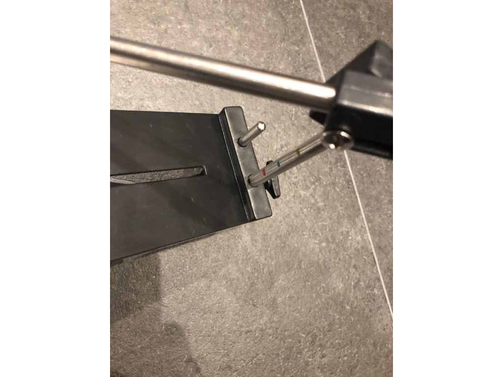 Na vodiacej tyčke sú farebne naznačené uhly brúsenia, ktoré obsiahnu všetky bežne používane nože - modrá farba (24°), žltá farba (21°), zelená farba (18°), červená farba (15°), čierna farba (10°).