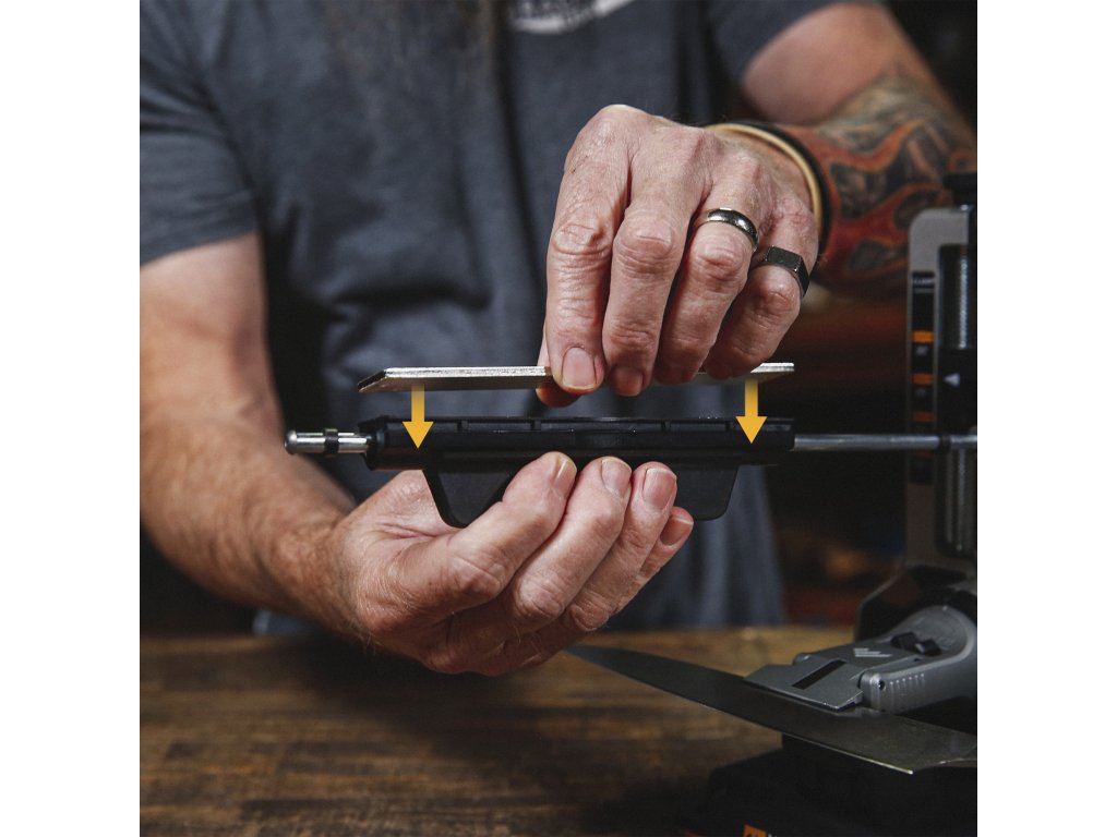 Brúsenie ťažších a hrubých nožov: sada obsahuje „stabilizačnú platformu svorky“, pre extra stabilitu pri brúsení väčších nožov.