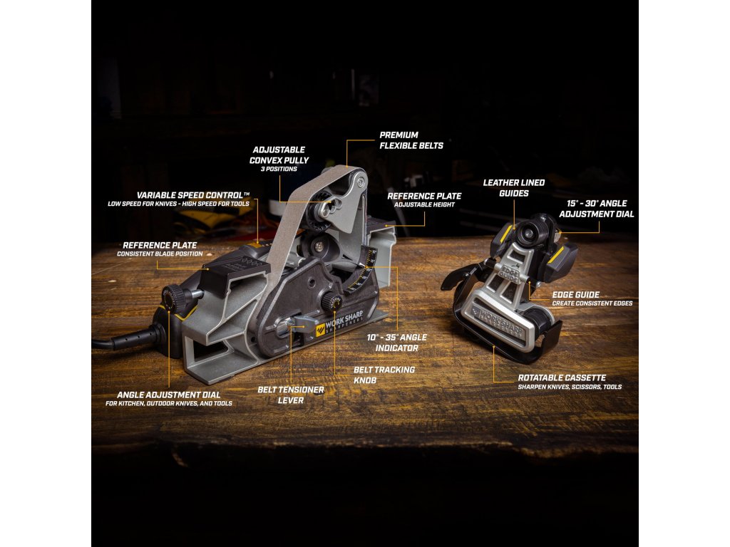 Rozšírená Elite verzia pozostáva zo základnej brúsky Work Sharp Ken Onion Edition Knife & Tool Sharpener Mk.2 a doplnkového nadstavca Ken Onion Mk.2 Blade Grinding Attachment. Tento nadstavec je vyrobený podľa vzoru profesionálnych priemyselných brúsok a pridáva brúske Ken Onion vylepšenú kontrolu ostrenia a väčšiu brúsnu plochu pre dokonalý zážitok z ostrenia nožov. Brúsku môžete používať samostatne, alebo s nadstavcom Blade Grinding Attachment.