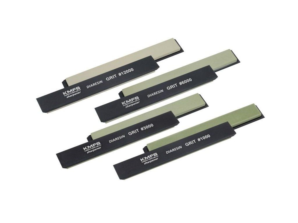 Sada 4 diamantových brúsnych kameňov so živicovým spojivom. Kamene sú položené na duralovej podložke. Sada je vhodná pre všetky KMFS brúsne sady.