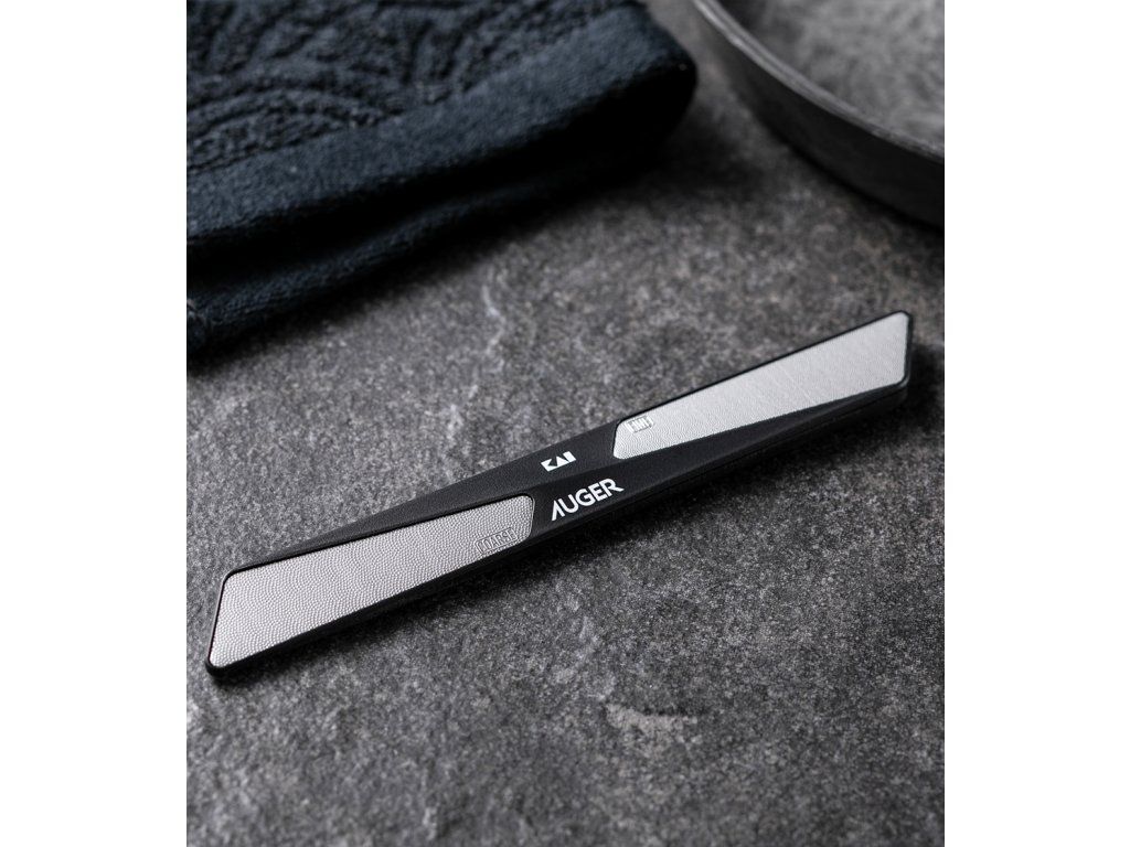 Elegantný pilník KAI Auger HC-2305 z ABS živice čiernej farby v 3D prevedení. Má dve brúsne plochy s rôznou zrnitosťou z oboch strán (celkovo 4 plochy). Hrubší povrch slúži na primárnu úpravu nechtov. Následne prejdite na jemný povrch, ktorým doladíte detaily.
