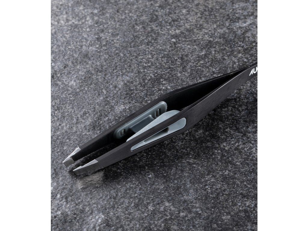Elegantná pinzeta KAI HC-2304 so šikmým hrotom slúži na uchopenie a odstránenie jemných a menších chĺpkov. Je z nerezovej ocele s čiernou titánovou povrchovou úpravou. V strede je posilnená pre lepšiu manipuláciu a pevnejší úchop. Táto časť zabezpečuje, že sa plochy pinzety neprekrížia ani pri mimoriadne silnom tlaku.