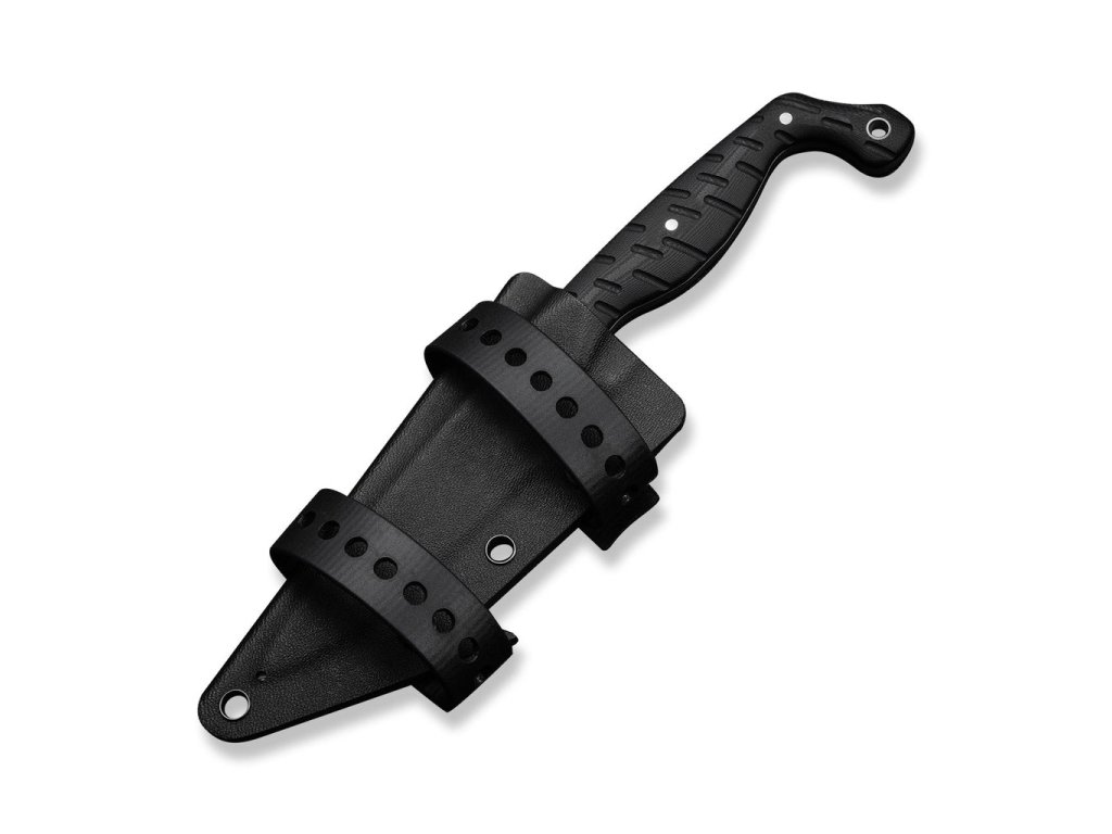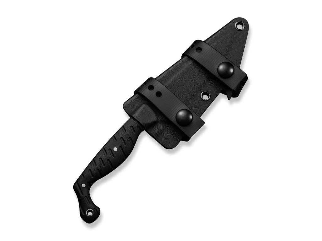 K nožu patrí aj čierne kydexové puzdro s dvoma remienkami, špeciálne navrhnuté tak, aby sa dal nôž nosiť viacerými spôsobmi.