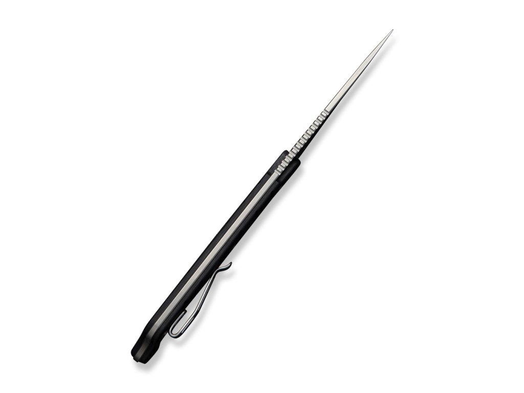 Čepeľ dĺžky 7,16 cm z odolnej nerezovej dusíkovej ocele Nitro-V s povrchovou úpravou stonewash. Nôž je jedinečný najmä vďaka originálne tvarovanej rukoväti z čiernej G10, ktorá ponúka ešte istejší úchop.