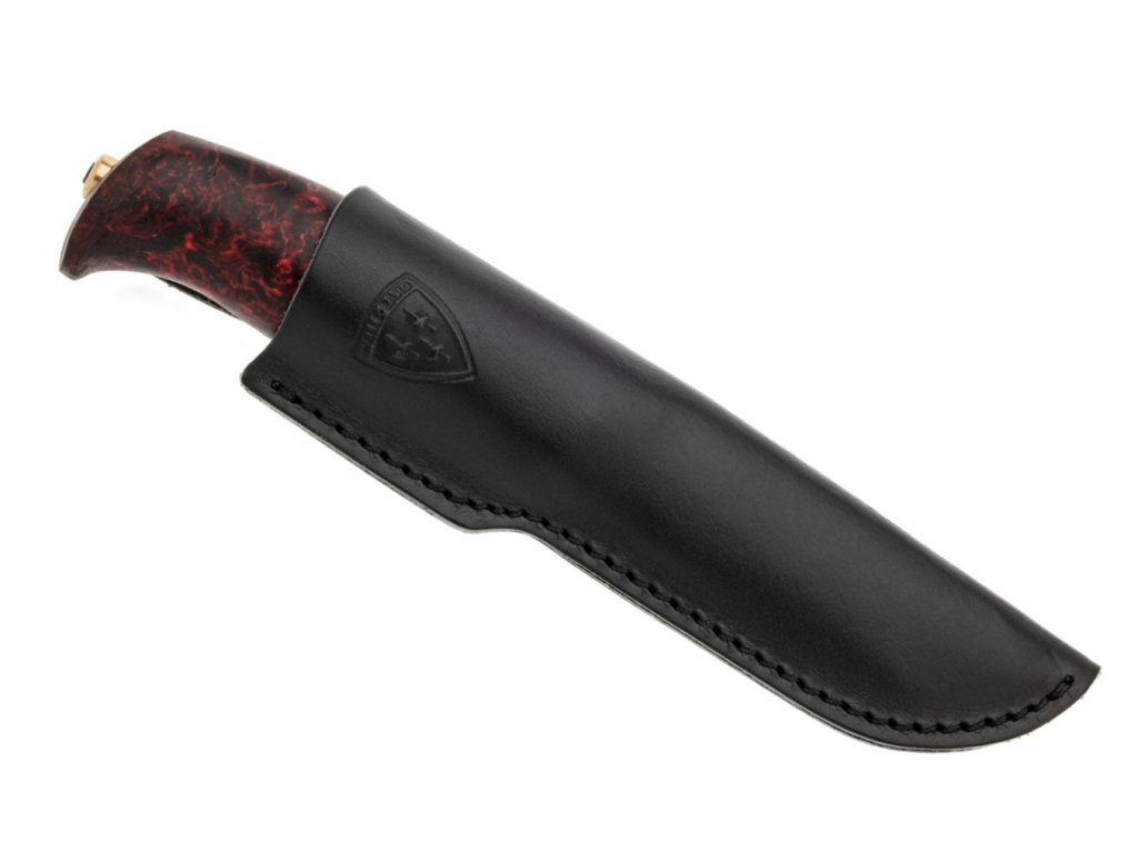 Čepeľ dĺžky 9 cm z nerezovej ocele Sandvik 12C27 má škandinávsky výbrus. Ergonomicky tvarovaná rukoväť z dreva kučeravej brezy zafarbeného do červeného a čierneho odtieňa pripomínajúceho plamene. Je tvarovaná tak, aby zabezpečila pohodlný úchop pre väčšinu veľkostí dlaní.
