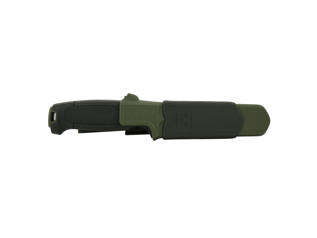 priamo na rukoväť (Click-On System) pre bezpečnejšie prenášanie noža. Má viacero možností nosenia – pútko na opasok, otvory na TEK-LOK a otočný plastový úchyt na opasok kompatibilný s MOLLE systémom.Nože Morakniv