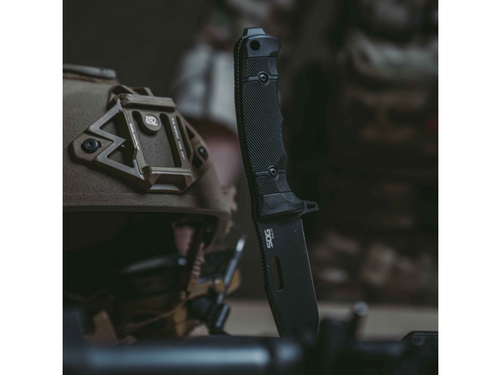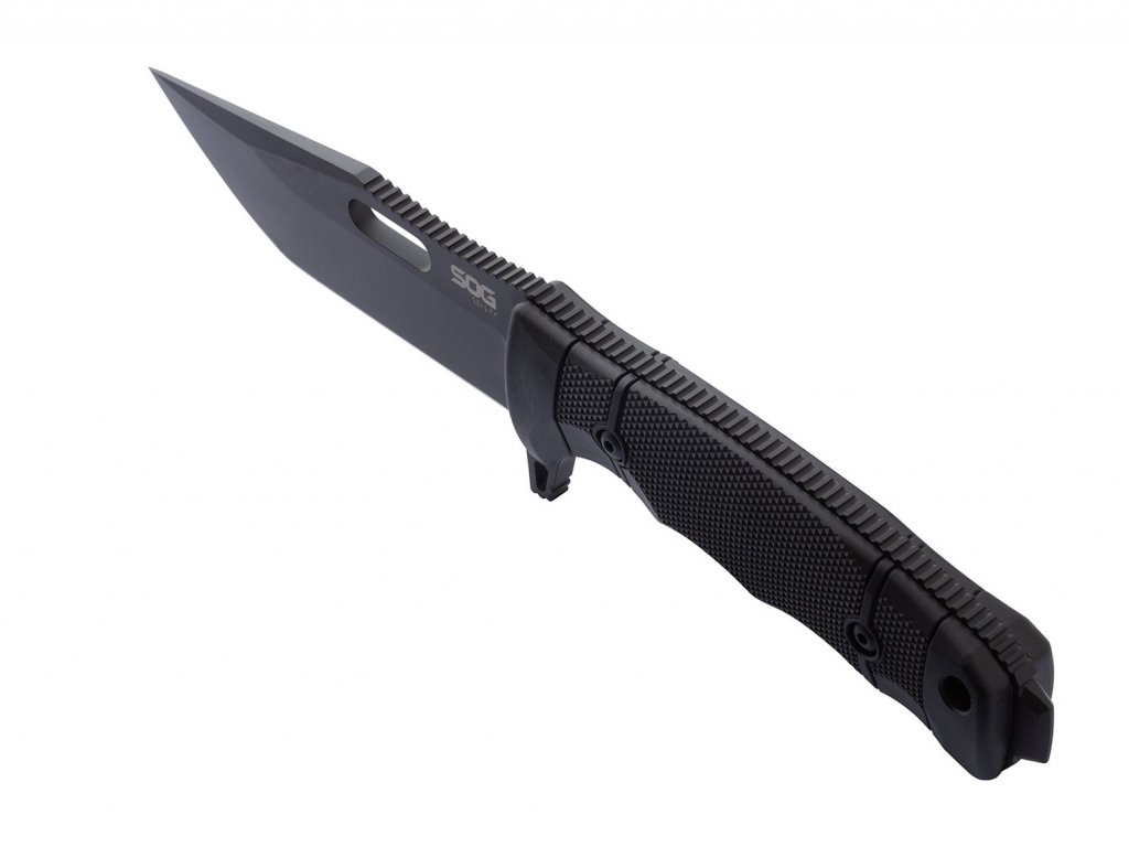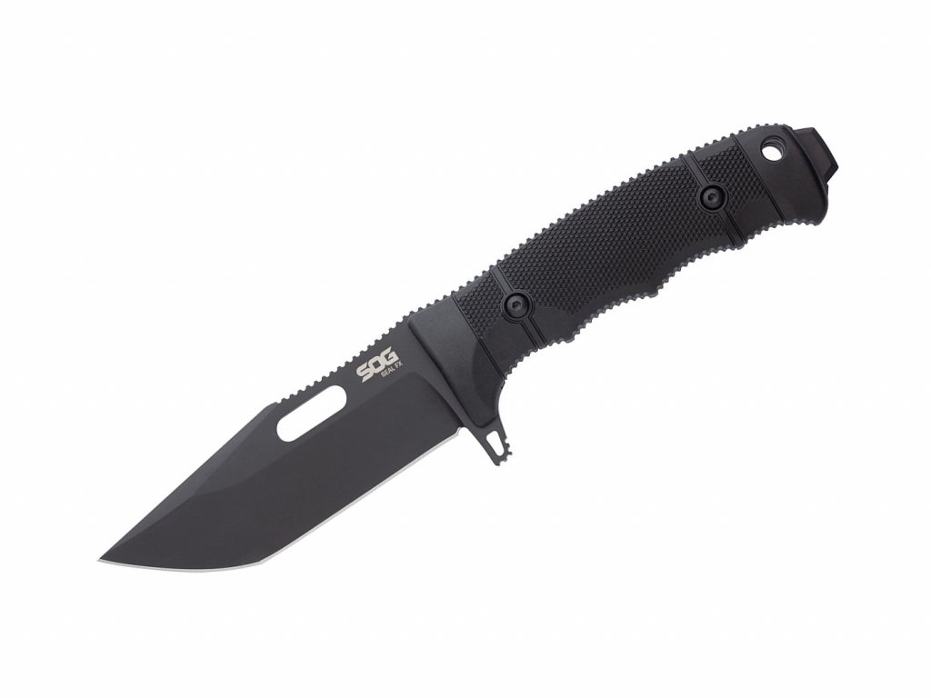 Nôž SOG Seal FX tanto bol vyrobený na základe odporúčaní od profesionálnych uživateľov. Čepeľ z prvotriednej nerezovej ocele je extrémne ostrá, odolná voči poškodeniu a dobre sa brúsi. Konštrukcia noža je full tang a pevná čepeľ dĺžky12,45 cm má čiernu povrchovú úpravu Cerakote.Rukoväť je z materiálu GRN (nylon spevnený sklenným vláknom), je štruktúrovaná, čo zabezpečuje bezpečný úchop. Na konci rukoväte sa nachádza hrot na rozbíjanie skla a lanyard hole - diera na prevlečenie šnúrky. Nôž sa dodáva s čiernym kydexovým puzdrom.