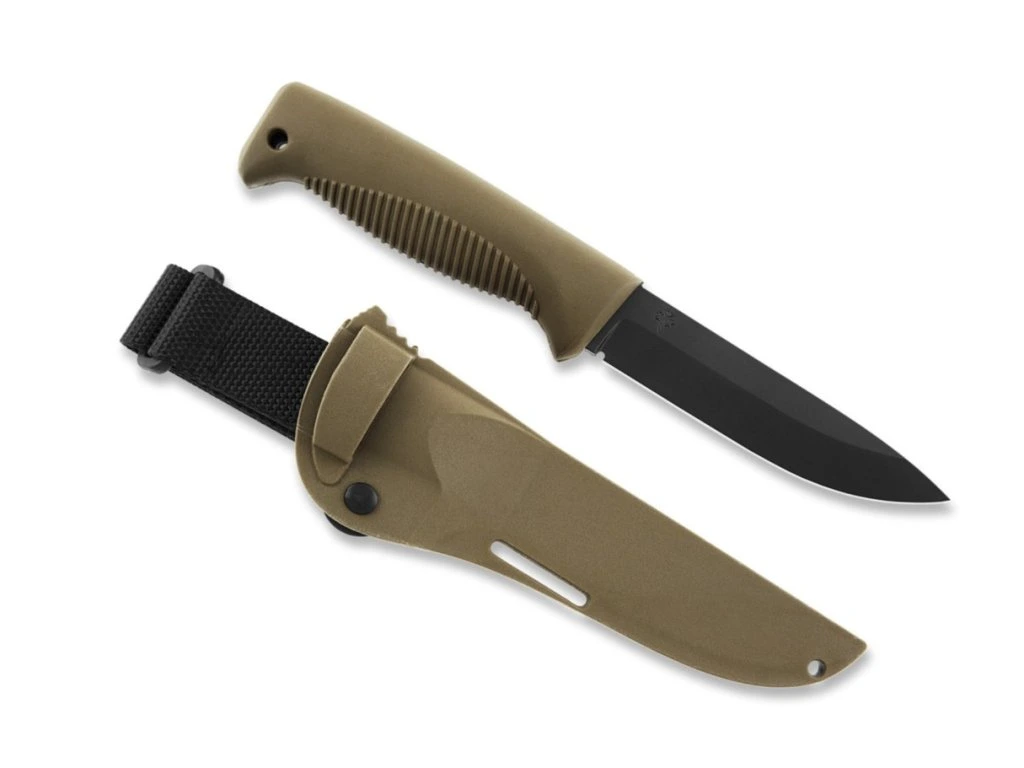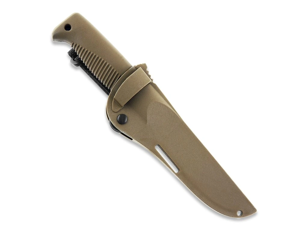 Súčasťou balenia je hnedé puzdro z plastového kompozitu určené pre pravákov aj ľavákov. Je vybavené uzamykacím systémom EasyLock, vďaka ktorému zostane nôž bezpečne na svojom mieste. Nôž sa z neho dá pohodlne vytiahnuť aj jednou rukou.K dispozícii je aj popruh (pútko) na suchý zips. Puzdro je kompatibilné so systémom MOLLE a PALS. Umožňuje aj nosenie hore nohami, zavesenie na batoh, vestu alebo ramenný popruh.