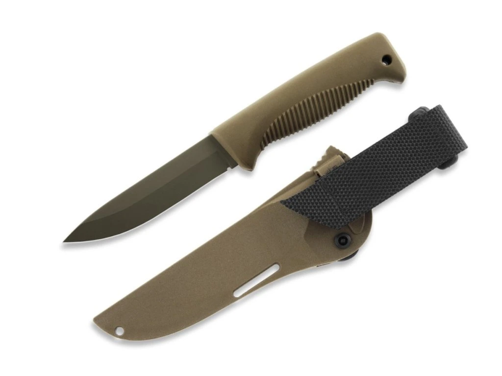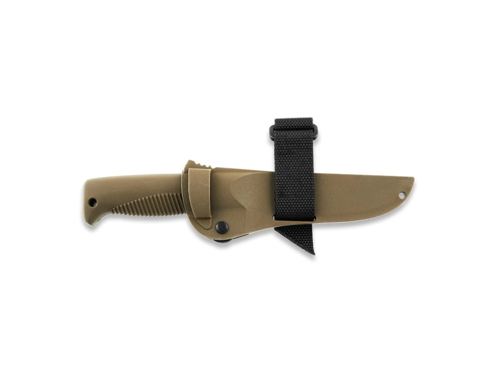 Súčasťou balenia je hnedé puzdro z plastového kompozitu určené pre pravákov aj ľavákov. Je vybavené uzamykacím systémom EasyLock, vďaka ktorému zostane nôž bezpečne na svojom mieste. Nôž sa z neho dá pohodlne vytiahnuť aj jednou rukou. K dispozícii je aj popruh (pútko) na suchý zips. Puzdro je kompatibilné so systémom MOLLE a PALS. Umožňuje aj nosenie hore nohami, zavesenie na batoh, vestu alebo ramenný popruh.