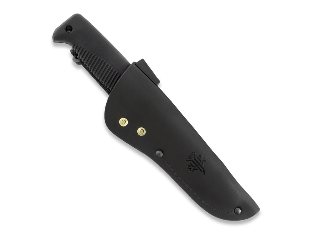 Súčasťou balenia je ručne vyrábané kožené puzdro. Disponuje inovatívnym uzamykacím mechanizmom EasyLock, vďaka ktorému zostane nôž bezpečne na svojom mieste. Nôž sa z neho dá pohodlne vytiahnuť aj jednou rukou. K dispozícii je aj popruh (pútko) na suchý zips.