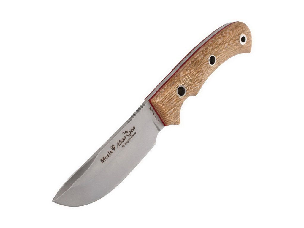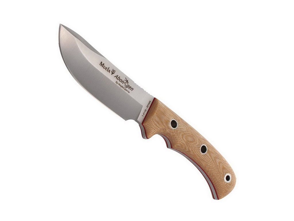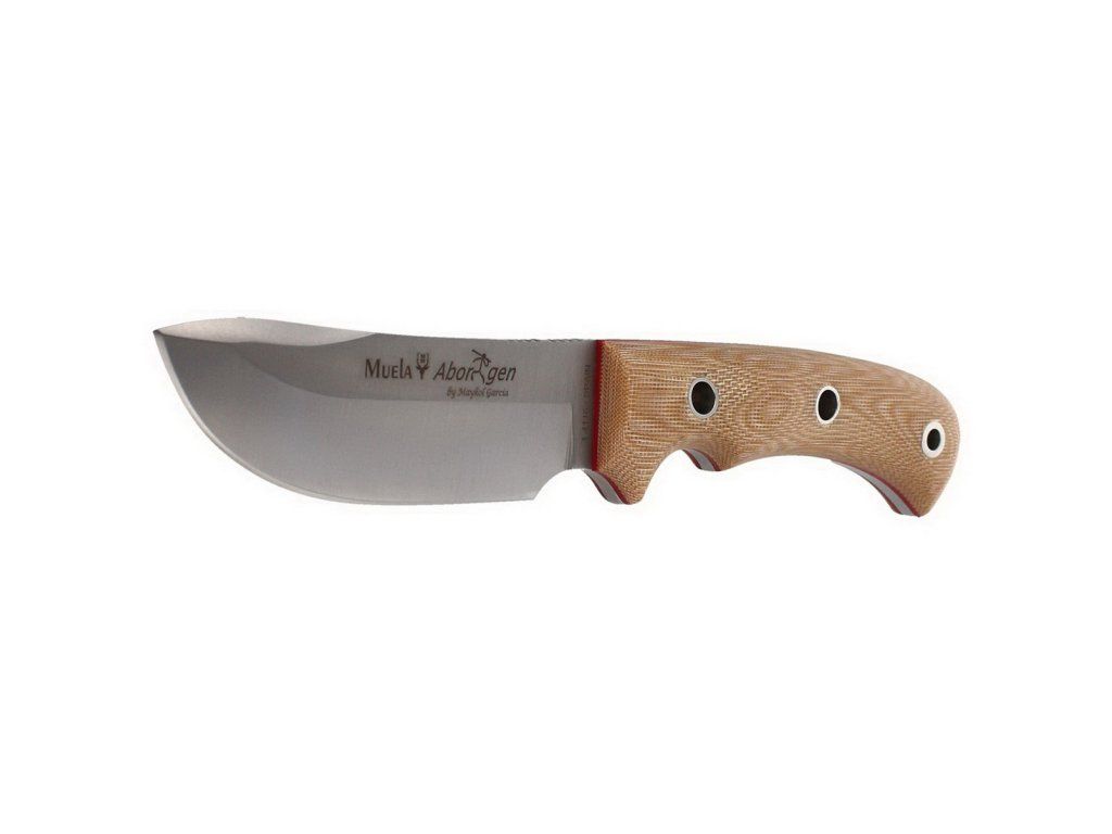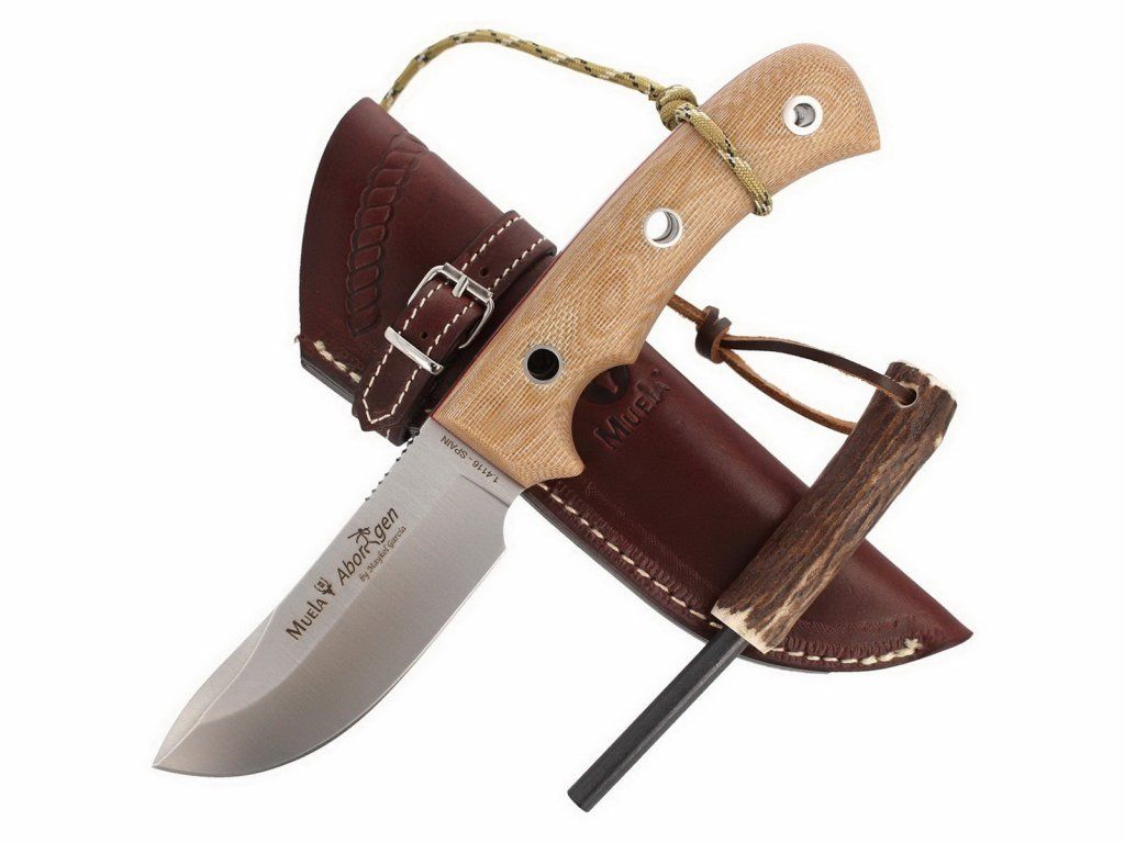 Lovecký nôž Aborigen od španielskeho výrobcu Muela. Konštrukciou ide o veľký nôž typu full tang a vďaka naozaj veľkej rukoväti výborne sadne aj mužom s veľkými rukami. Oblejší tvar čepele a odolná rukoväť z micarty predurčujú tento nôž ako skvelého pomocníka pre každého lovca. Súčasťou je veľmi kvalitne spracované kožené puzdro, kresadlo a kus padákovej šnúry (paracord).