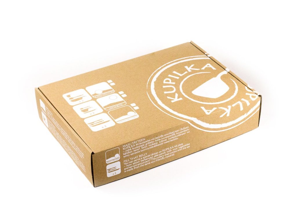 Balenie z recyklovaného kartónu. Výrobky Kupilka sú vyrobené vo Fínsku a sú plne recyklovateľné.