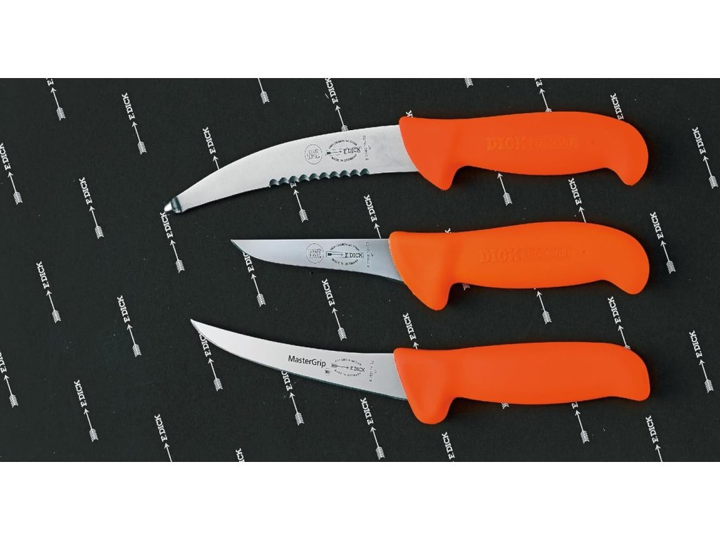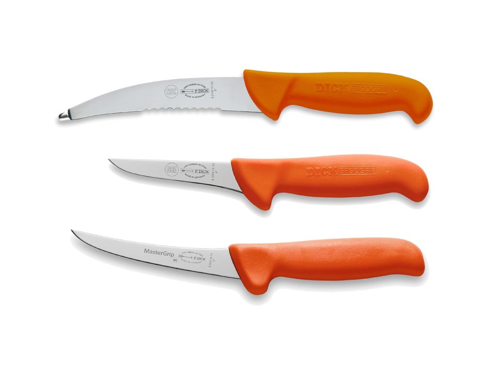 Profesionálna sada mäsiarskych nožov F. Dick 8255620 je určená pre lovcov a poľovníkov na spracovanie úlovku. Obsahuje 3 základné nože potrebné pre prácu s mäsom (2x vykosťovací a nôž na vnútornosti).