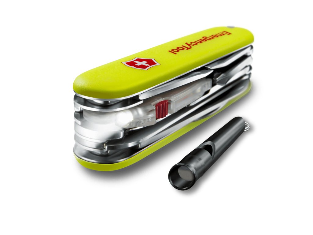 Obľúbený model Huntsman v záchranárskom prevedení. Bezpečnostný švajčiarsky nôž Victorinox Huntsman Lite Emergency Tool je ideálny pri výpadkoch energie v dôsledku prírodných udalostí či poruche infraštruktúry. V rukoväti je zabudované LED osvetlenie. Okrem noža sa v balení nachádza malá signalizačná píšťalka s krúžkom na kľúče a praktické kresadlo so špirálovým práchnom (podpaľovačom). Balenie tak obsahuje 23 nástrojov, ktoré využijete v rôznych núdzových situáciách.
