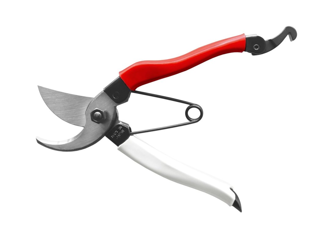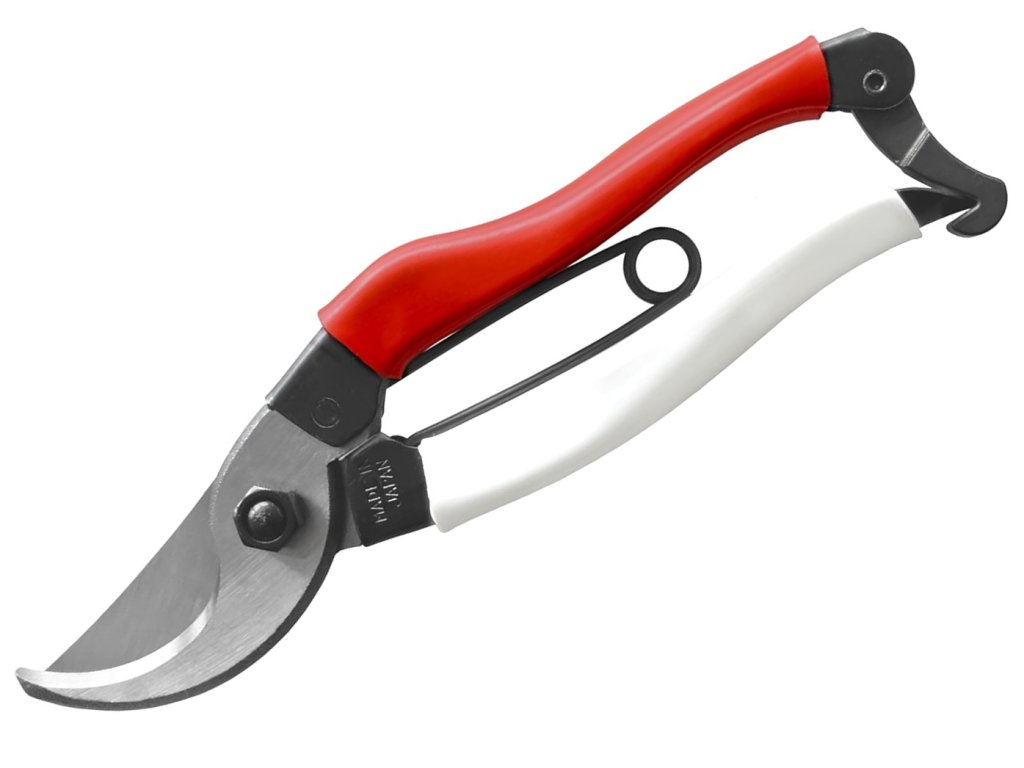 Pružina v tvare V zaisťuje rovnomerne rozloženú záťaž po celej dĺžke, čo zaručuje bezpečné a plynulé zatváranie nožníc. Nožnice majú jednoduchý uzamykací systém v tvare háčika na konci rukoväte, ktorý sa dá obslúžiť pomocou jednej ruky.