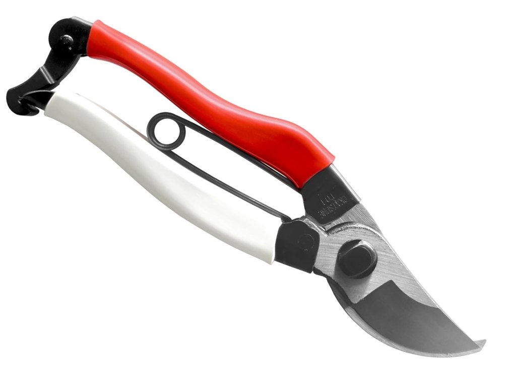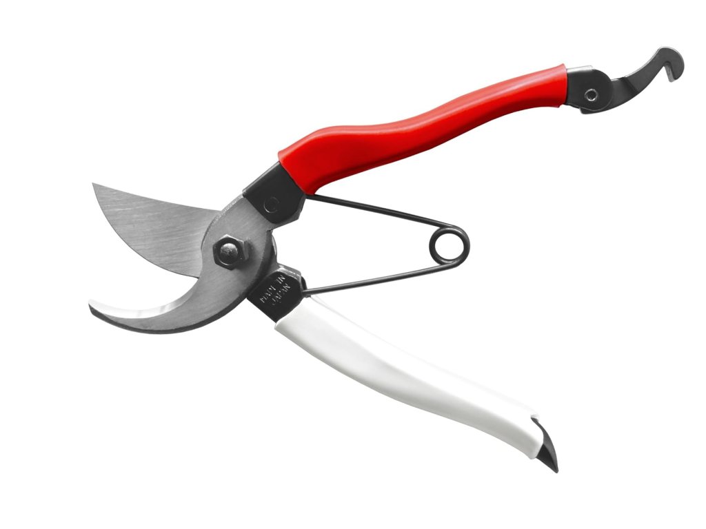 Pružina v tvare V zaisťuje rovnomerne rozloženú záťaž po celej dĺžke, čo zaručuje bezpečné a plynulé zatváranie nožníc. Nožnice majú jednoduchý uzamykací systém v tvare háčika na konci rukoväte, ktorý sa dá obslúžiť pomocou jednej ruky.