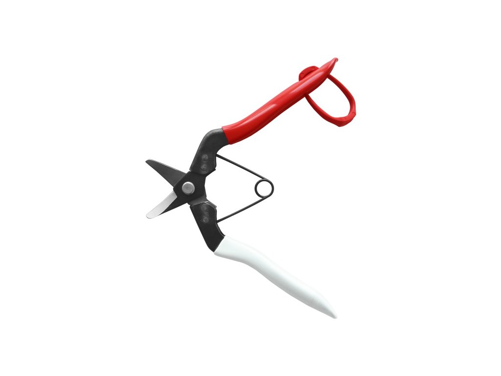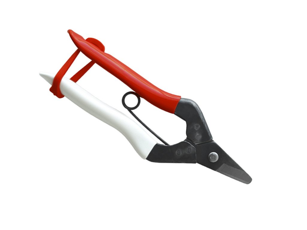 Pružina v tvare V zaisťuje rovnomerne rozloženú záťaž po celej dĺžke, čo zaručuje bezpečné a plynulé zatváranie nožníc. Nožnice majú na konci rukoväte slučku na uzamykanie.