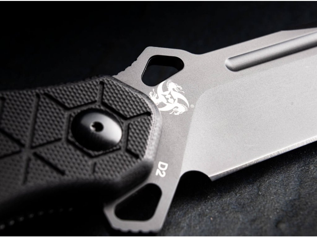 Čepeľ z nástrojovej ocele D2 dĺžky 9,5 cm má tvar tanto a kvalitnú čiernu povrchovú úpravu. Je uložená na guľôčkových ložiskách. Otvára sa pomocou flippera a čepeľ zaisťuje poistka liner lock.