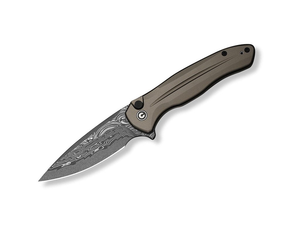 Zatvárací nôž Civivi Button Lock Kitefin C24091-DS1 14C28N Damascus Brownish Gray Aluminum je užitočný outdoorový nôž. Využijete ho na práce v lese aj bežné použitie (EDC). Čepeľ z damaškovej ocele dĺžky 8 cm. Rukoväť z hnedo-sivého hliníka, ktorý celkovo nôž odľahčuje. Má hmotnosť 78,8 g. Reverzibilný vreckový klip z nehrdzavejúcej ocele umožňuje hlboké nosenie (deep carry).