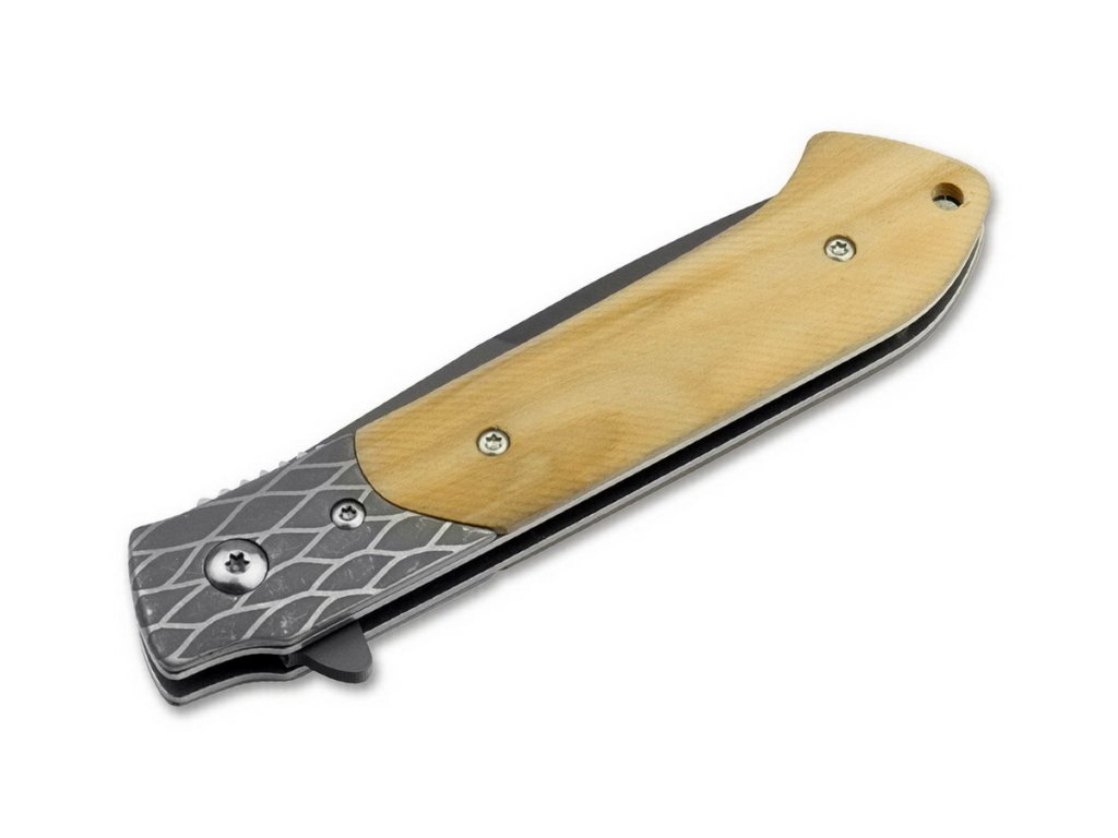 Boker Magnum Erebos je vreckový nôž pre každodenné použitie s otváraním typu flipper. Čepeľ dĺžky 7,6 cm z nehrdzavejúcej ocele 440A a šedou povrchovou úpravou. Rukoväť z dreva Zebrawood (Zebrano). Poistka linerlock zaisťuje bezpečné používanie noža.