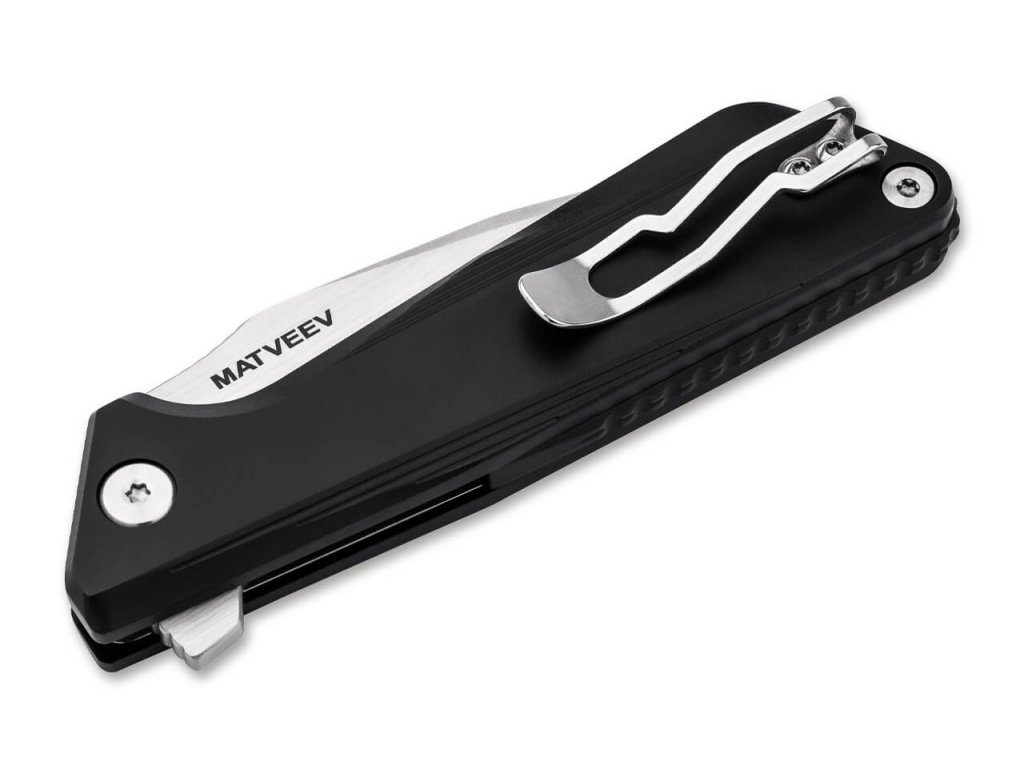 Vreckový zatvárací nôž Böker - Magnum MF. 3 navrhol ruský dizajnér Grigorii Matveev ako dokonalý nôž na každodenné použitie (EDC). Čepeľ dĺžky 7,2 cm z nerezovej ocele 440B. Rukoväť z čierneho hliníka. Otváranie pomocou flippera, poistka typu Liner Lock. Vreckový klip s viacerými možnosťami zavesenia.