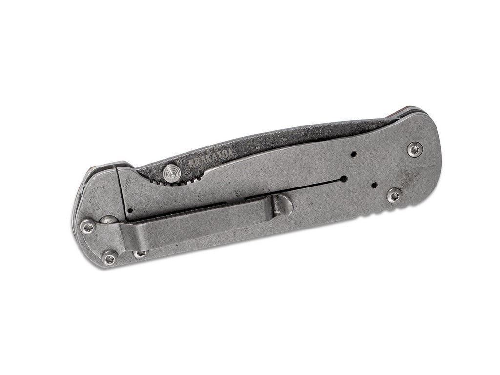 Krakatoa Folder je prvý zatvárací nôž s vysokouhlíkovou oceľou a škandinávskym výbrusom od Condor Tool & Knife. Konštruktér Jorge Umana a dizajnér Joe Flowers vytvorili patentovaný mechanizmus na zosilnenie poistky framelock - systém „Condorlock“, ktorý pri namáhaní znižuje tlak na rukoväť. S čepeľou z uhlíkovej ocele 1095 a rukoväťou z micarty zelenej farby sa jedná o naozaj jedinečný nôž.