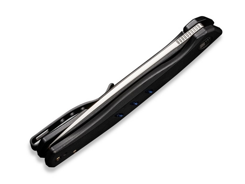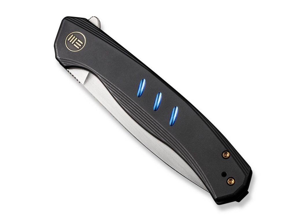 We Knife Seer je prémiový nôž vhodný pre najnáročnejších používateľov a zberateľov. Tento model je vyrobený v limitovanej edícií 610 kusov. Nôž je veľmi elegantný a vyniká kvalitou spracovania a použitých materiálov. Čepeľ je vyrobená zo "superocele" CPM 20CV, má dĺžku 8,83 cm, ručne robenú povrchovú úpravu a plochý výbrus. Čepeľ zaisťuje poistka frame lock. Rukoväť z titánu 6AL4V čiernej farby s tromi drážkami, ktoré sú andodizované modrou farbou. Takisto klip a sktrutky noža sú vyrobené z titánu. Čepeľ je uložená na keramických ložiskách. Každý kus je číslovaný.